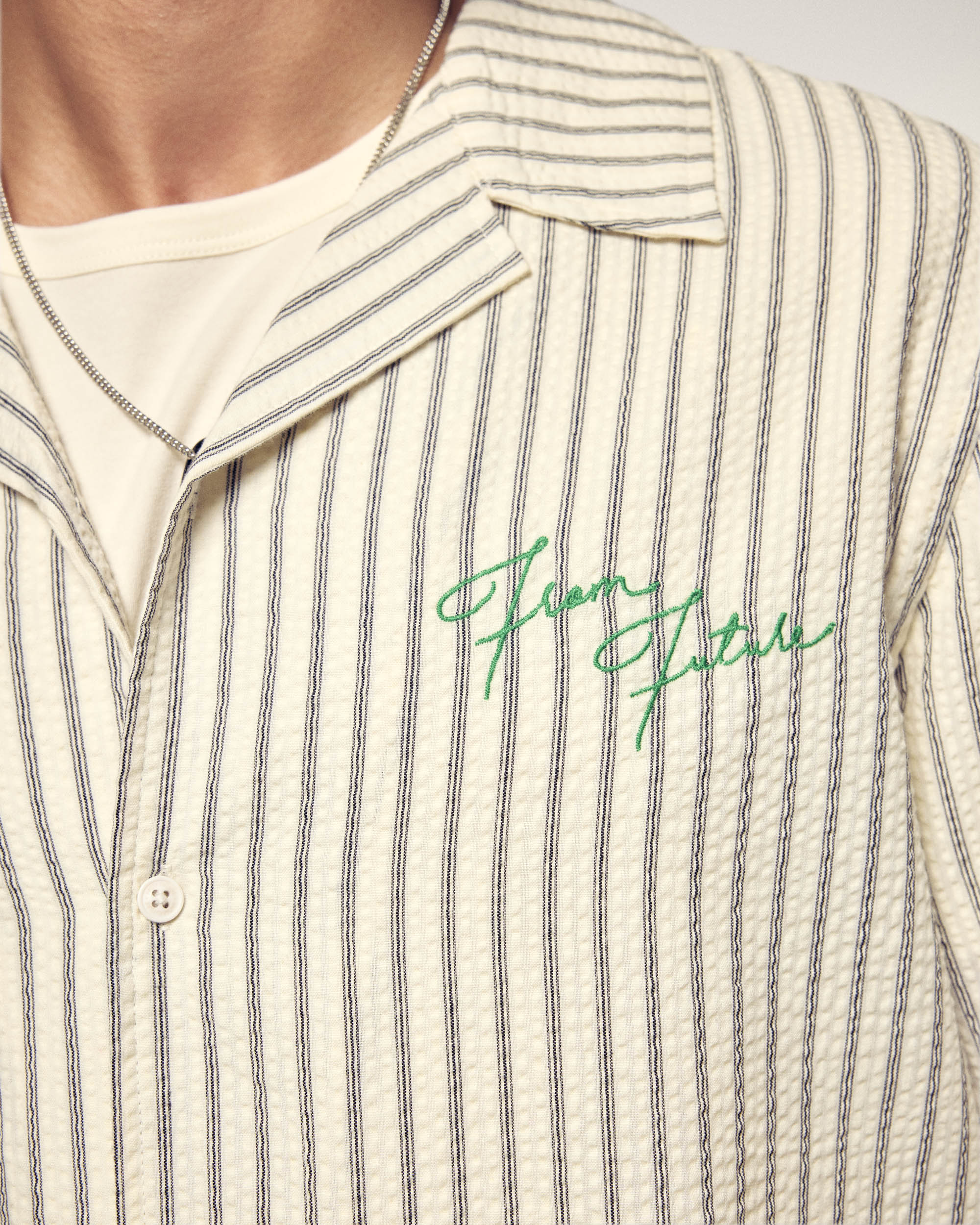 The perfect summer twist. This short-sleeved shirt plays the style card with its fine stripes and floral patterns embroidered on the back. A casual essential, signed From Future.