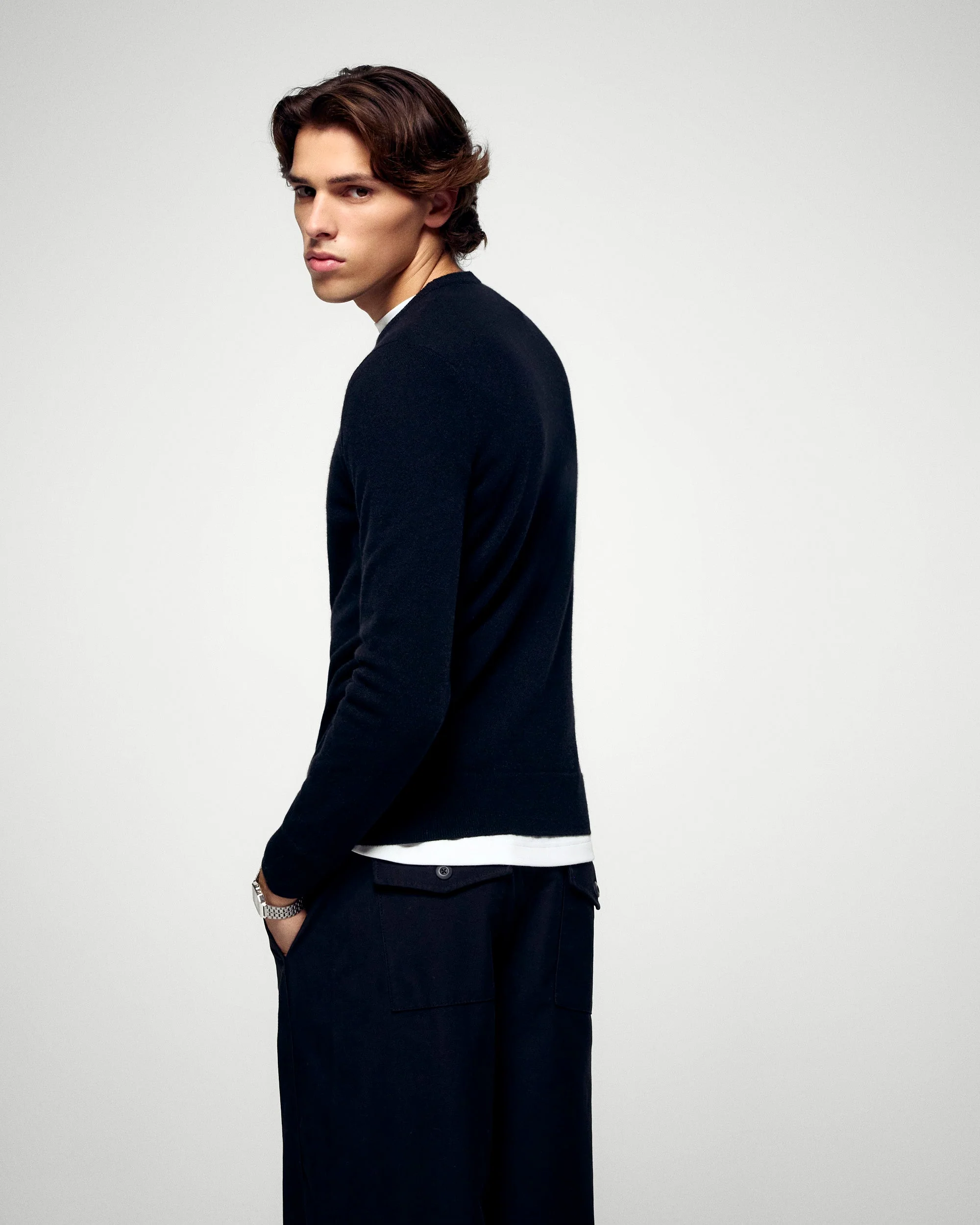 Crafted from 2-ply cashmere, this timeless sweater offers a refined and versatile style. The crewneck, long sleeves, and ribbed edges create a perfect fit for any occasion. Pair it with tailored trousers for a polished look or jeans for a casual ensemble.