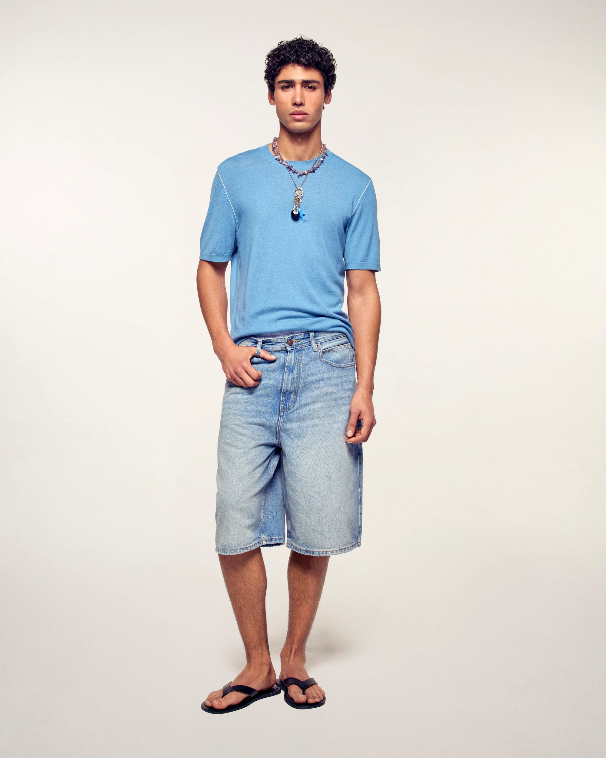 A minimalist and elegant piece made from merino wool for absolute lightness. This short-sleeve sweater stands out with its fine contrasting trims that delicately highlight the silhouette for a modern and refined style.