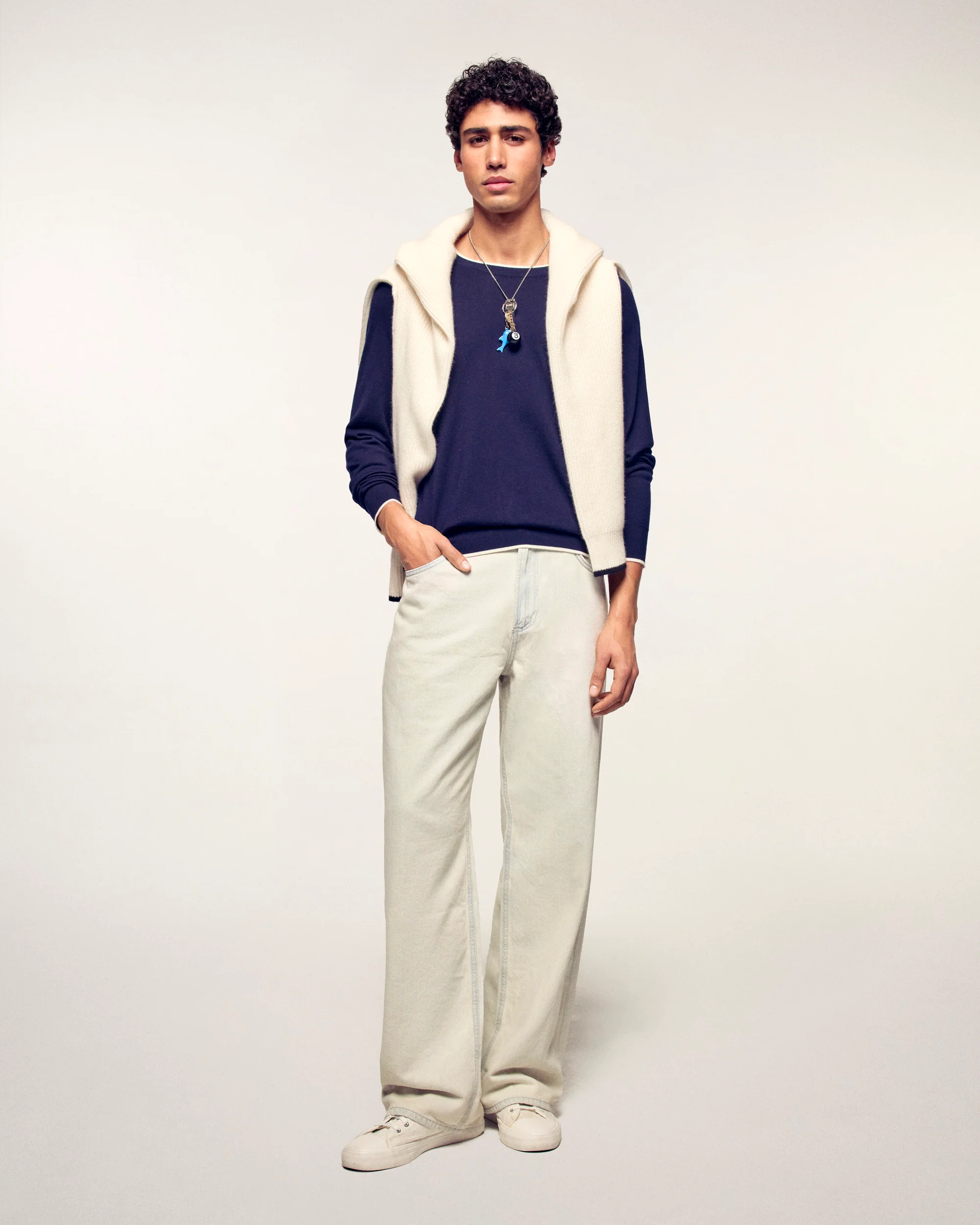 A clean and graphic silhouette for this merino wool crewneck sweater. It stands out with contrasting trims that delicately highlight the neckline, cuffs, and hem for a modern and refined look.